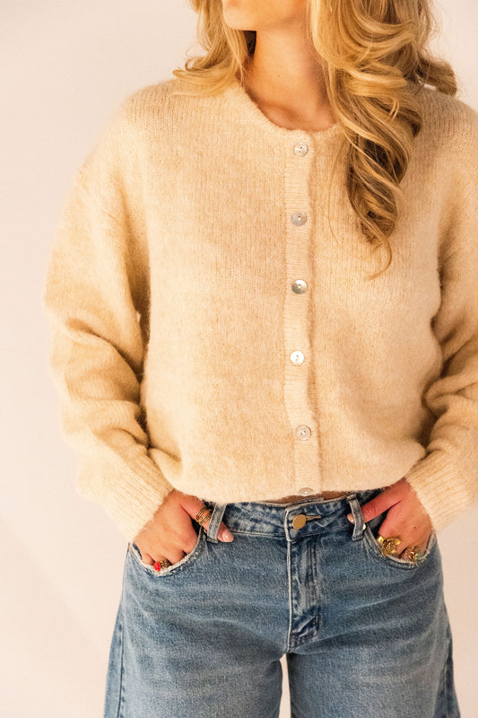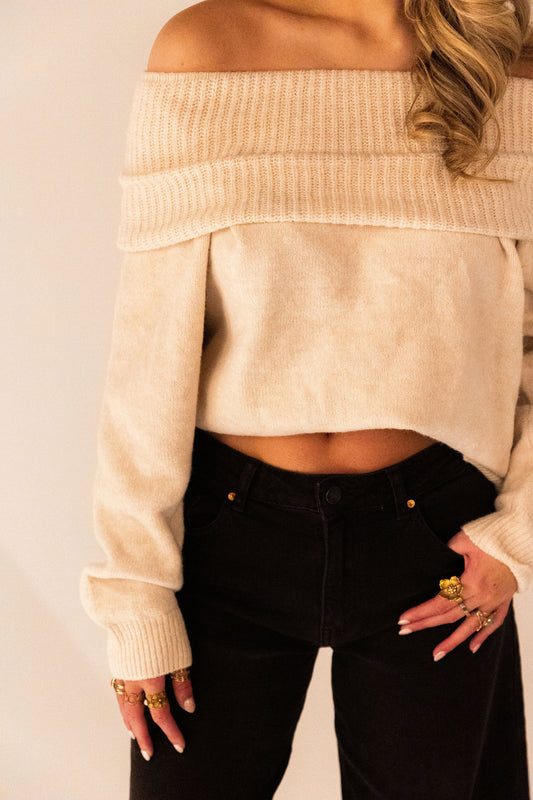 BESPAAR €12,00Tess Off-Shoulder Trui - Ecru