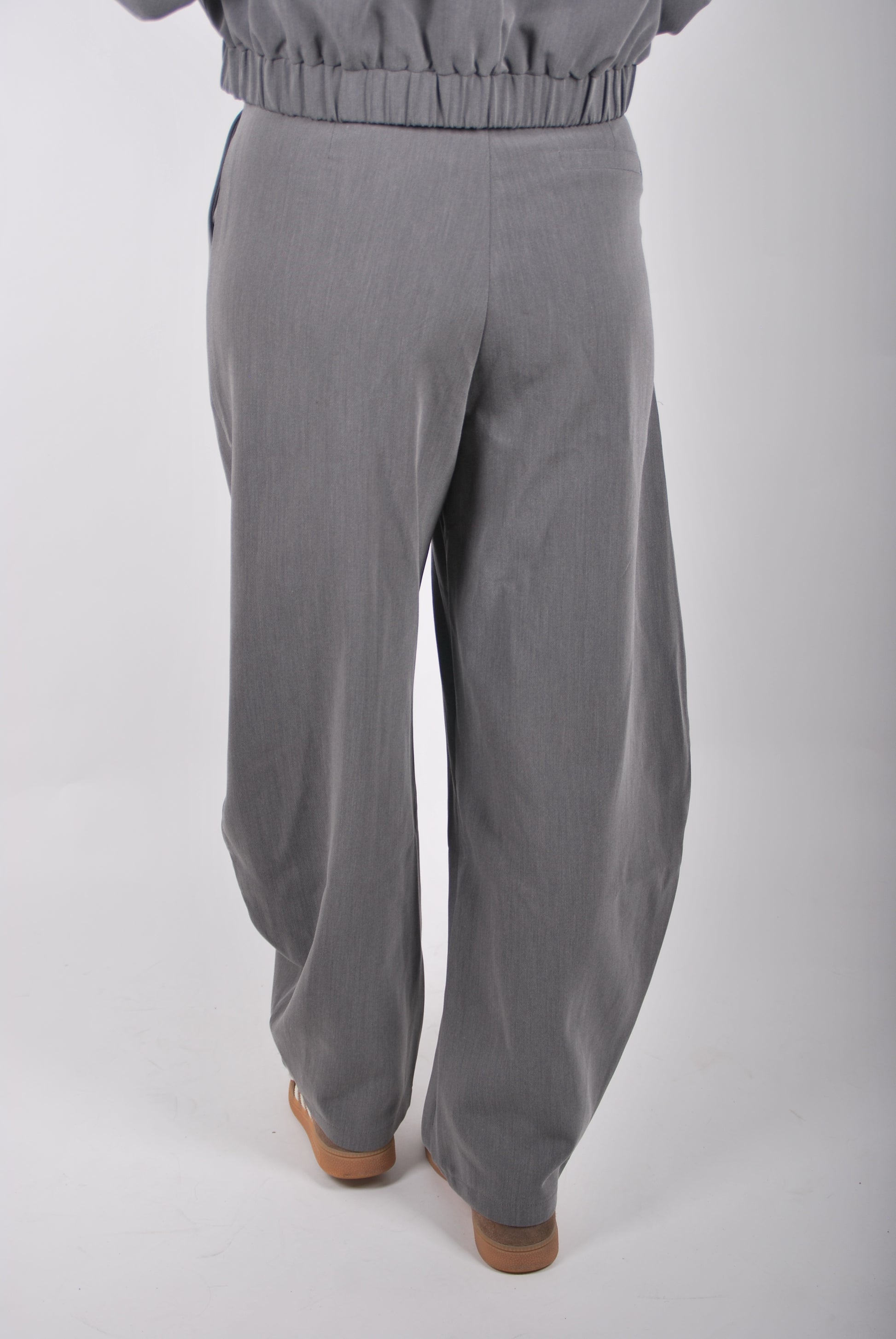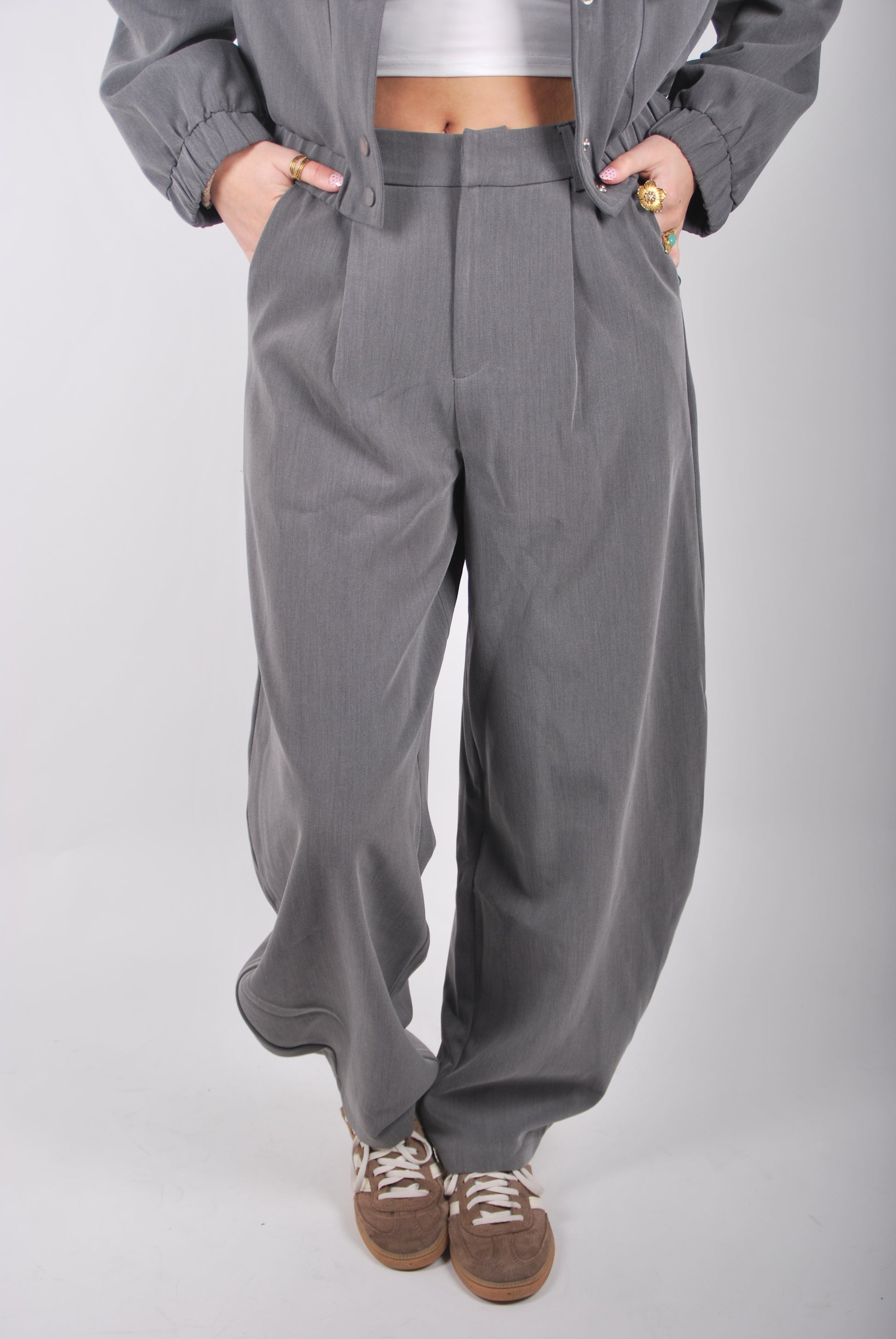 Deze grijze balloon broek heeft een moderne, comfortabele pasvorm met een hoge taille. Je kunt ’m heel gemakkelijk combineren met het Loua jasje voor een complete set, maar hij werkt net zo goed met een basic top of knit. Een prachtige, veelzijdige broek voor elke dag.