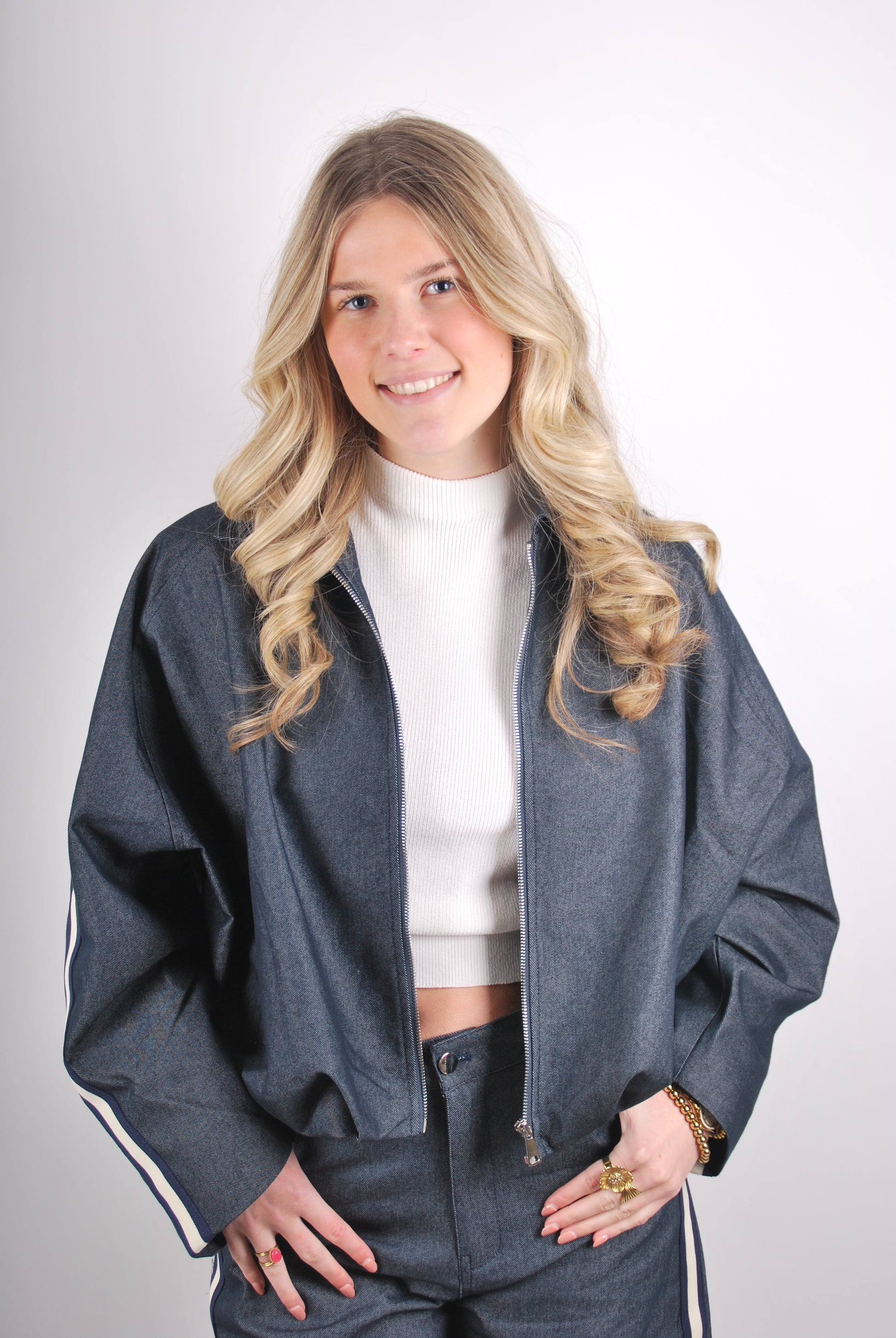 Deze donkere spijkerjas heeft een stoere en trendy uitstraling. De streep aan de zijkant geeft de jas een sportieve twist en is perfect te combineren met de bijpassende Pip Jeans voor een complete denim look.