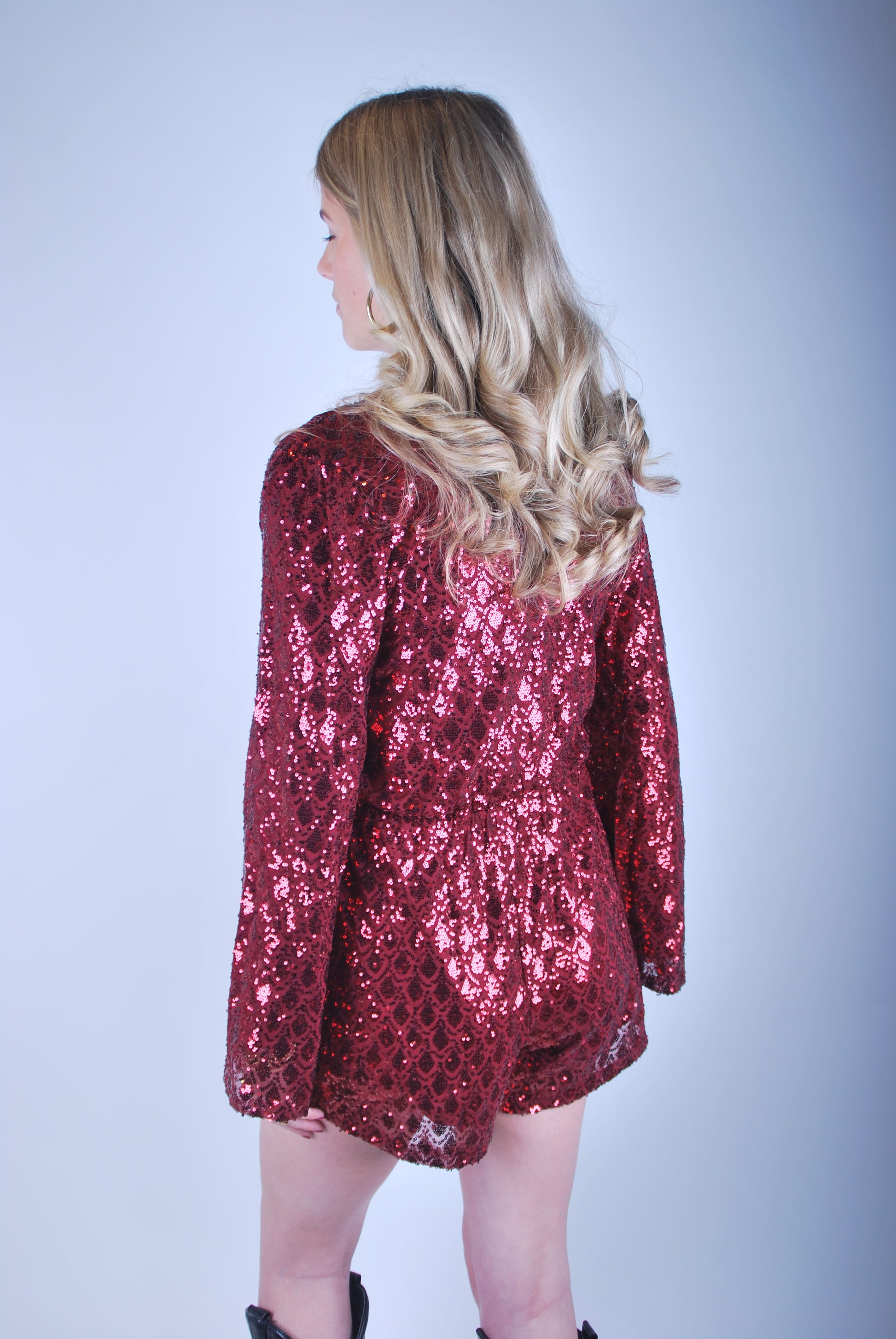 Deze bordeaux glitter playsuit met pailletten is dé party musthave! De warme kleur en shiny finish maken ’m perfect voor een night out of feestjes. Comfortabel, opvallend en helemaal on-trend.