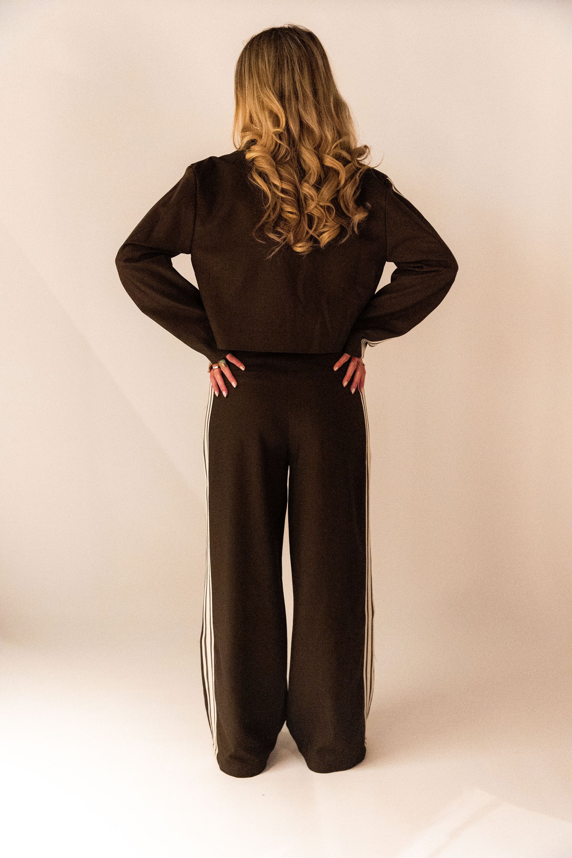Leuk jasje van Ambika in het bruin met een sportieve streep die direct zorgt voor een frisse, trendy uitstraling. Het jasje is los te dragen, maar ook als complete set verkrijgbaar voor een stijlvolle, moderne look. Combineer het met een jeans voor een casual maar toch vrouwelijke outfit — super veelzijdig en makkelijk te stylen!